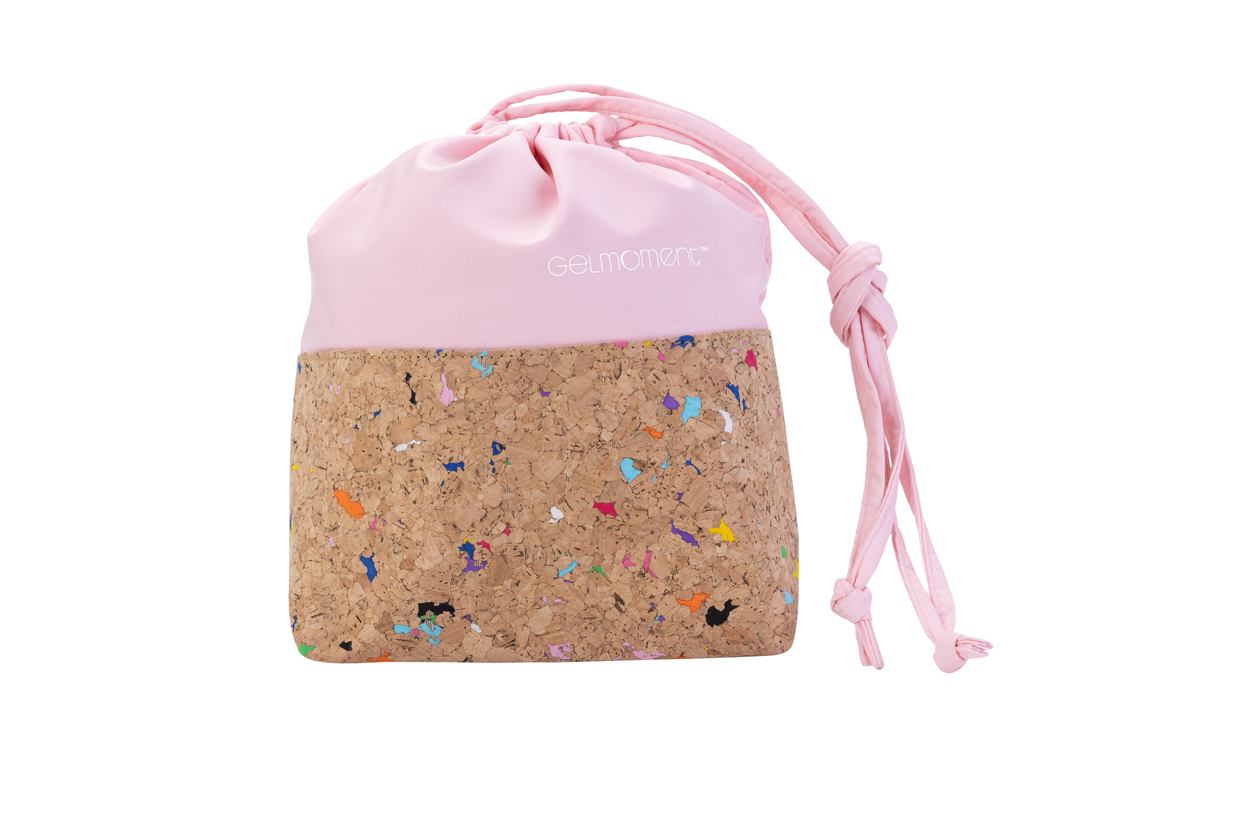 GelMoment’s Cork Drawstring Bag is as sturdy as it is stylish. Tote around your smaller essentials in this perfectly sized and uniquely designed drawstring bag. You have two colour schemes to choose from: cork base with multicolour speckles, pale pink vinyl upper body, and white GelMoment logo; or cork base with gold speckles, black vinyl upper body, and golden GelMoment logo.